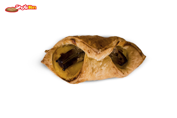 PORCIÓN DE PASTEL HOJALDRADO DE BANANO.