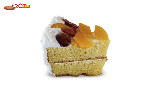 SABORIZACON CON JARABE TRES LECHES, RELLENO DE CREMA DE VAINILLA Y COBERTURA DE FRUTAS NATURALES: UVA, FRESA, MELOCOTÓN, KIWI.