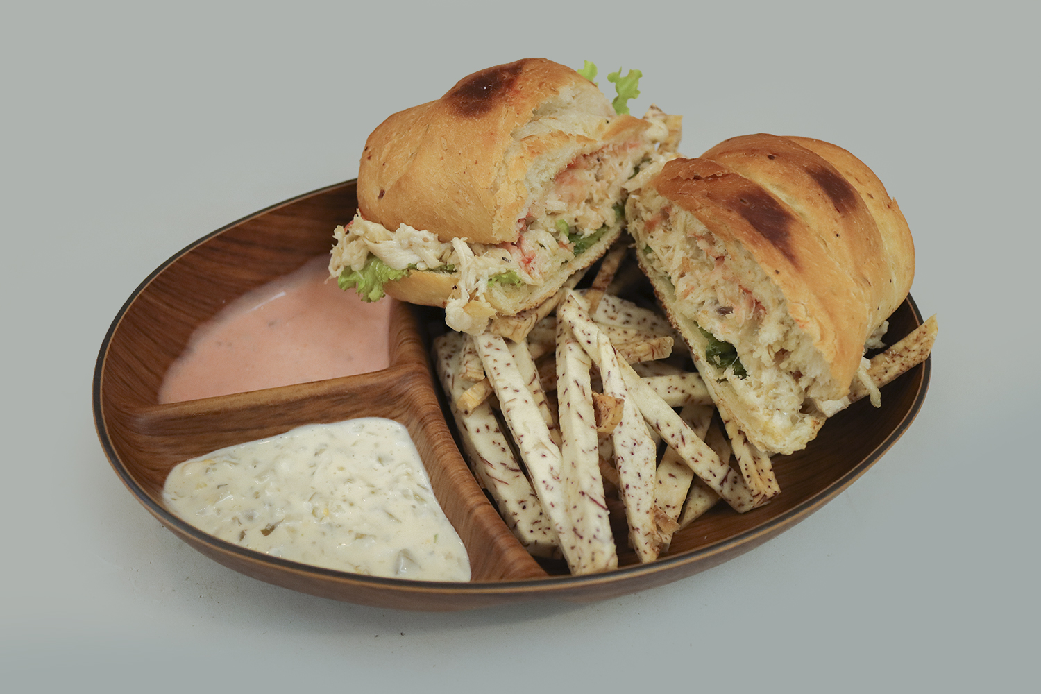 MALANGUINA ACOMPAÑADO DE TOMATE, CEBOLLA Y LECHUGA Y SALSA DE QUESO