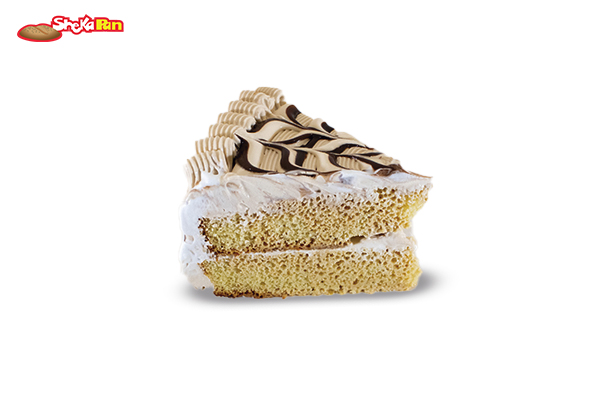 PASTEL FRIO DECORADO, SABORIZDO CON JARABE DE CAFÉ, RELLENO Y COBERTURA DE CREMA DE CAFÉ