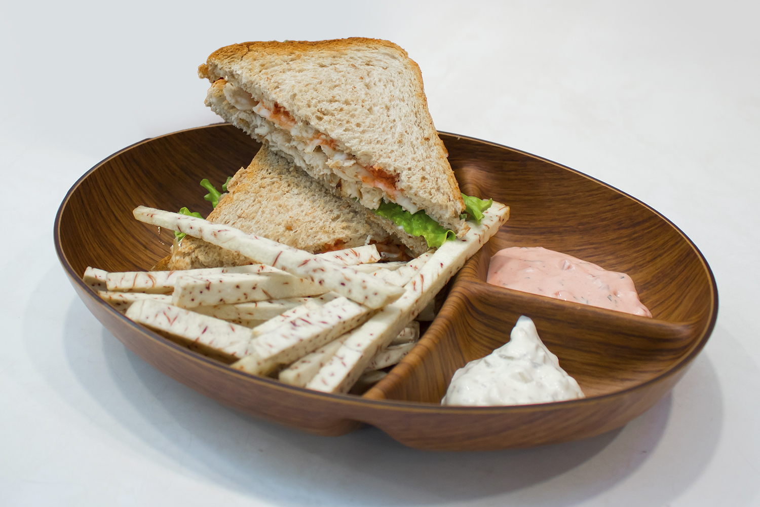 PAN INTEGRAL RELLENO DE POLLO CON CILANDRO, RETOÑO DE ALFALFA Y QUESO MOTZ,