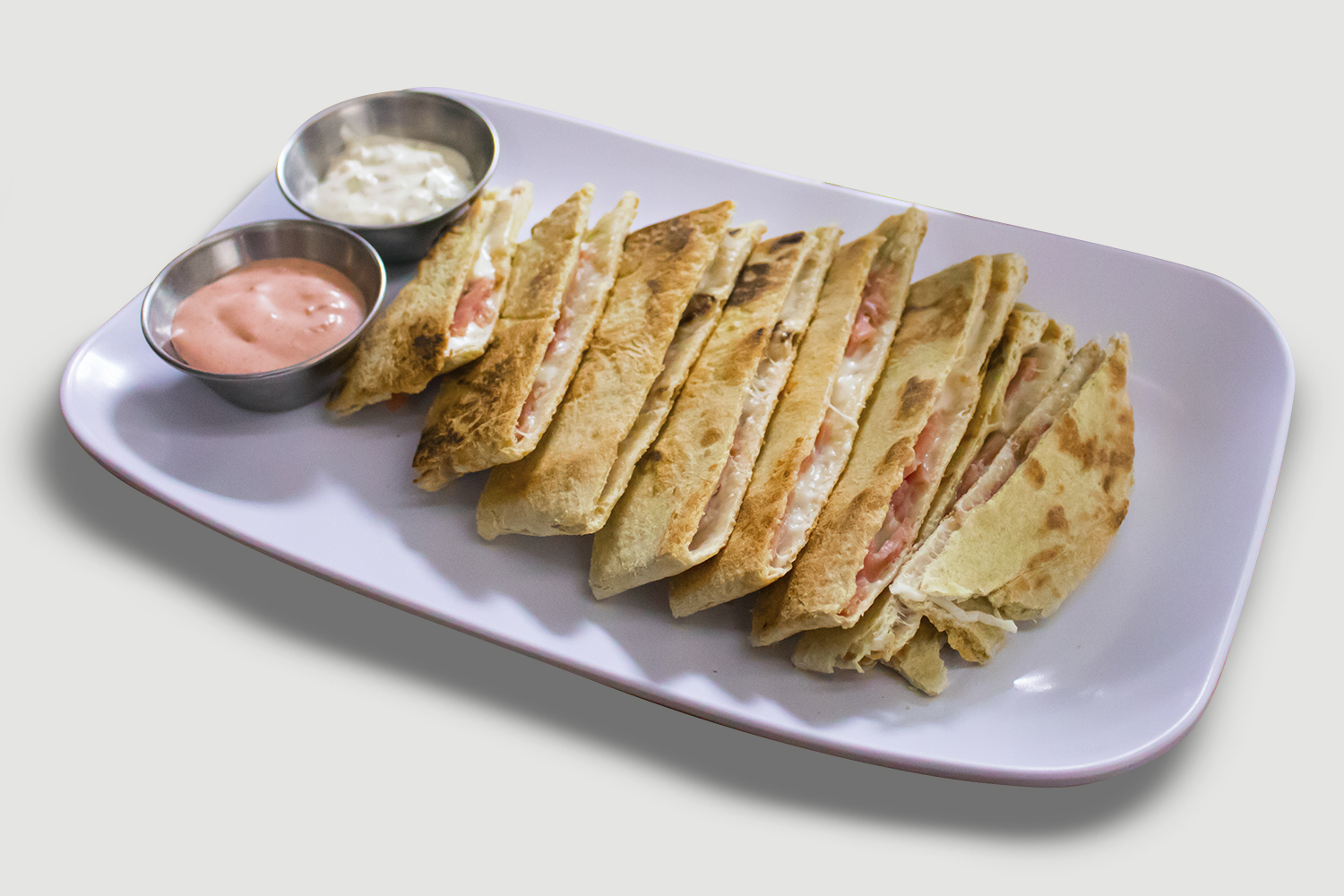 TORTILLA DE HARINA, CON JAMON Y QUESO. 2 ADEREZOS