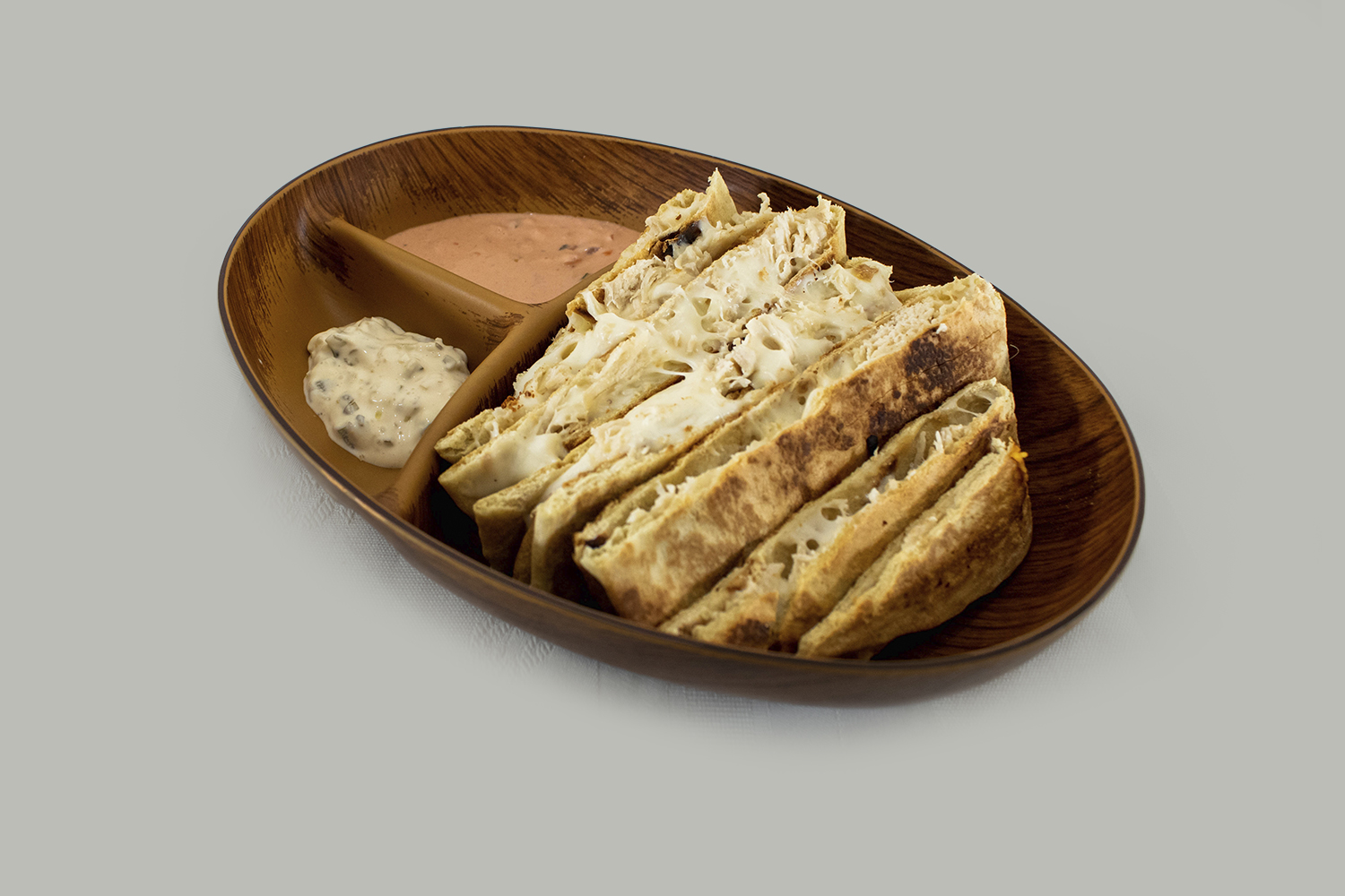 TORTILLA DE HARINA, CON POLLO Y QUESO. 2 ADEREZOS