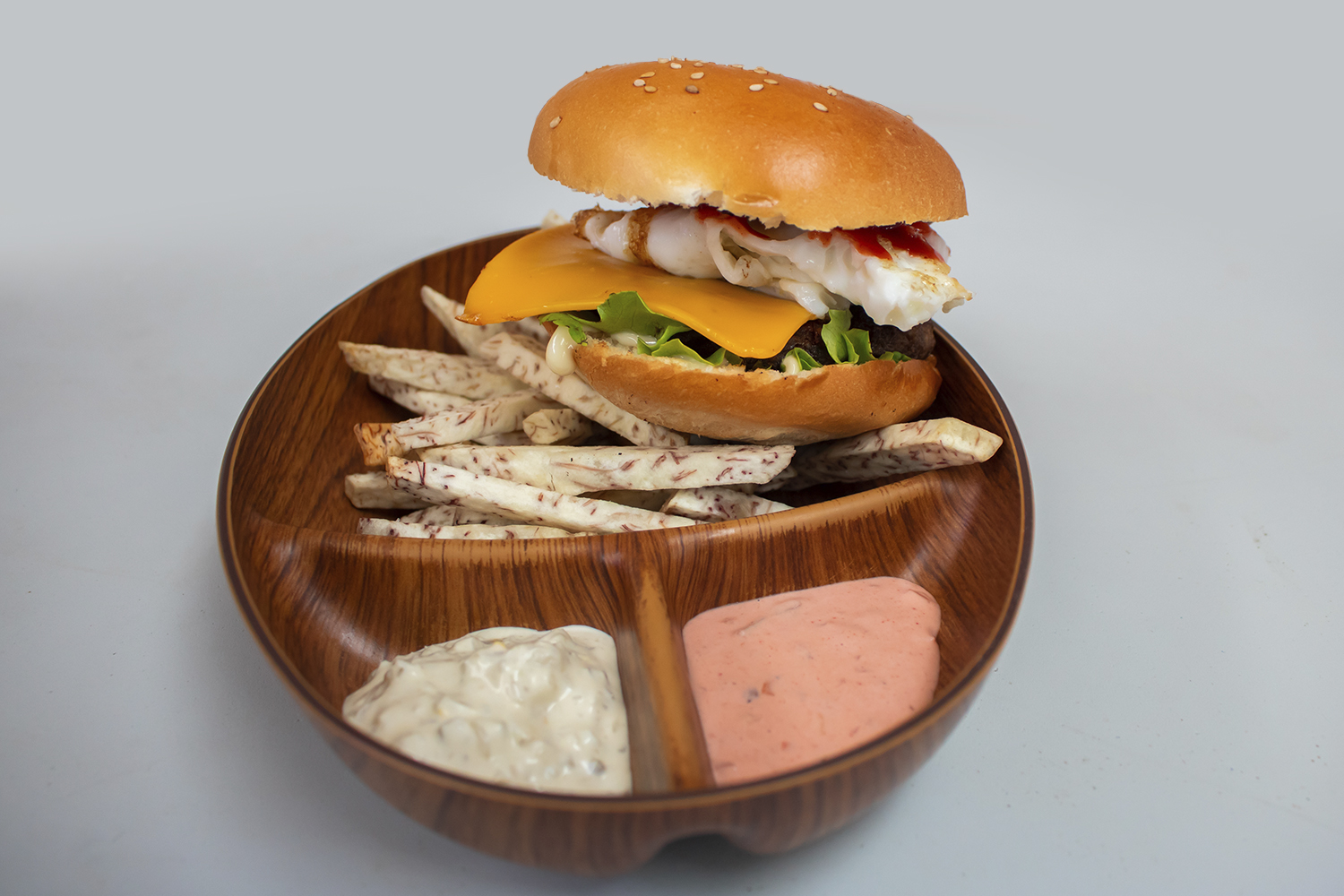 TORITO: HAMBUERGUESA CON TOCINO CARNE, HUEVO, VEGETALES, QUESO FUNDIDO Y PEPINIOS